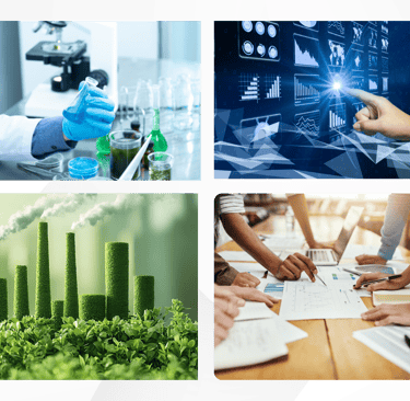 A one-stop green innovation hub combining physical and digital infrastructure to reduce R&D costs, ensure profitable ESG compliance, and open transparent supply chains.